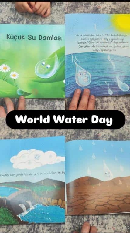 Sustainability For All e-twinning projemiz kapsamında Dünya Su Günü etkinlikleri yaptık; suyun önemini anlatan hikâye okuduk ve farkındalık afişleri hazırladık!