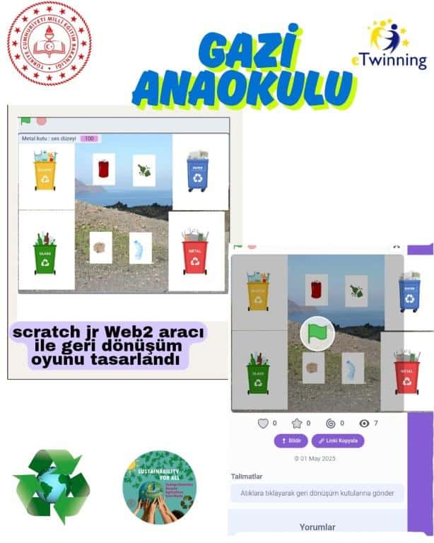 "Sustainability for All" eTwinning projemiz kapsamında, okul öncesi öğrencilerimiz için Scratch Jr aracıyla bir oyun tasarlandı.